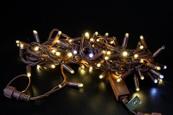Светодиодная гирлянда нить 10м, 24В, статика, коричневый провод, теплая белая